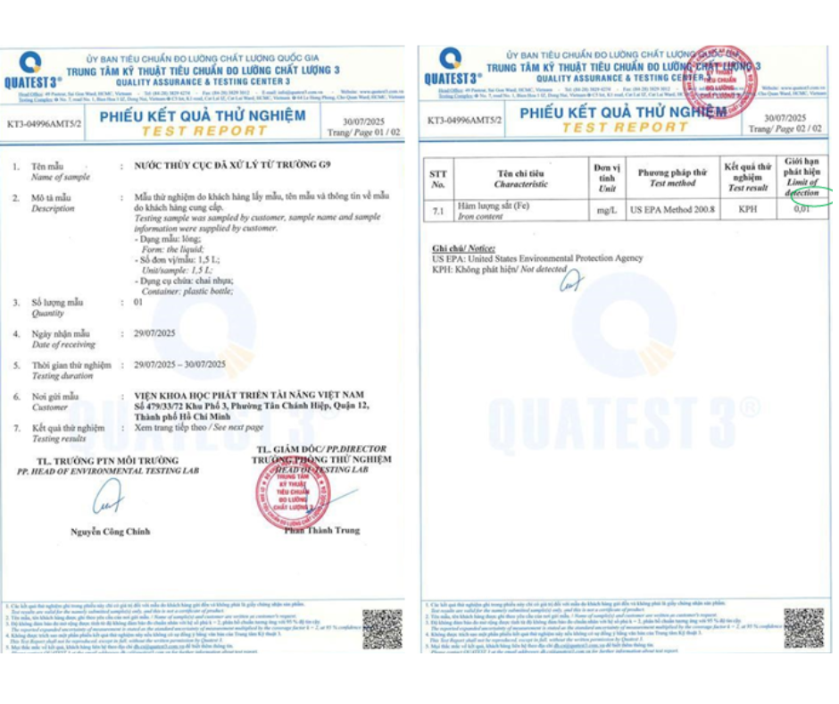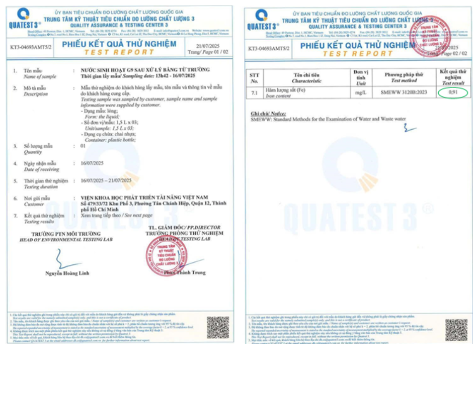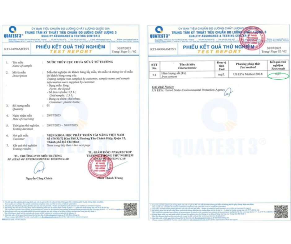 KẾT LUẬN: So sánh 2 kết quả cho thấy LÕI LỌC TỪ TRƯỜNG TẠI VÒI đã khử được 99,99% kim loại nặng trong nước thủy cục